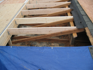 The city of Edmonds requires a roofing permit when there is any modification or change to the roof or the roof sheathing. With the plans prepared by grouparchitect, the quote from Addicott Roofing and a material and labor estimate for the rafter, knee wall and sheathing material and labor I acquired the permit. The total cost was $456.50. Two inspections are required; B-FRAIMING and B-FINISH.