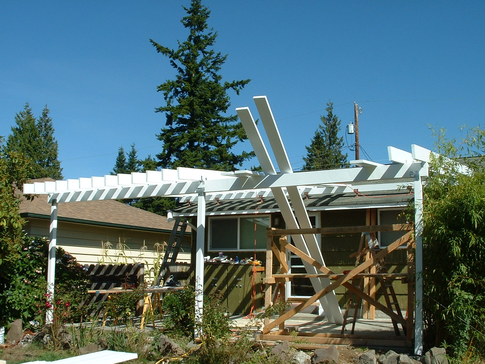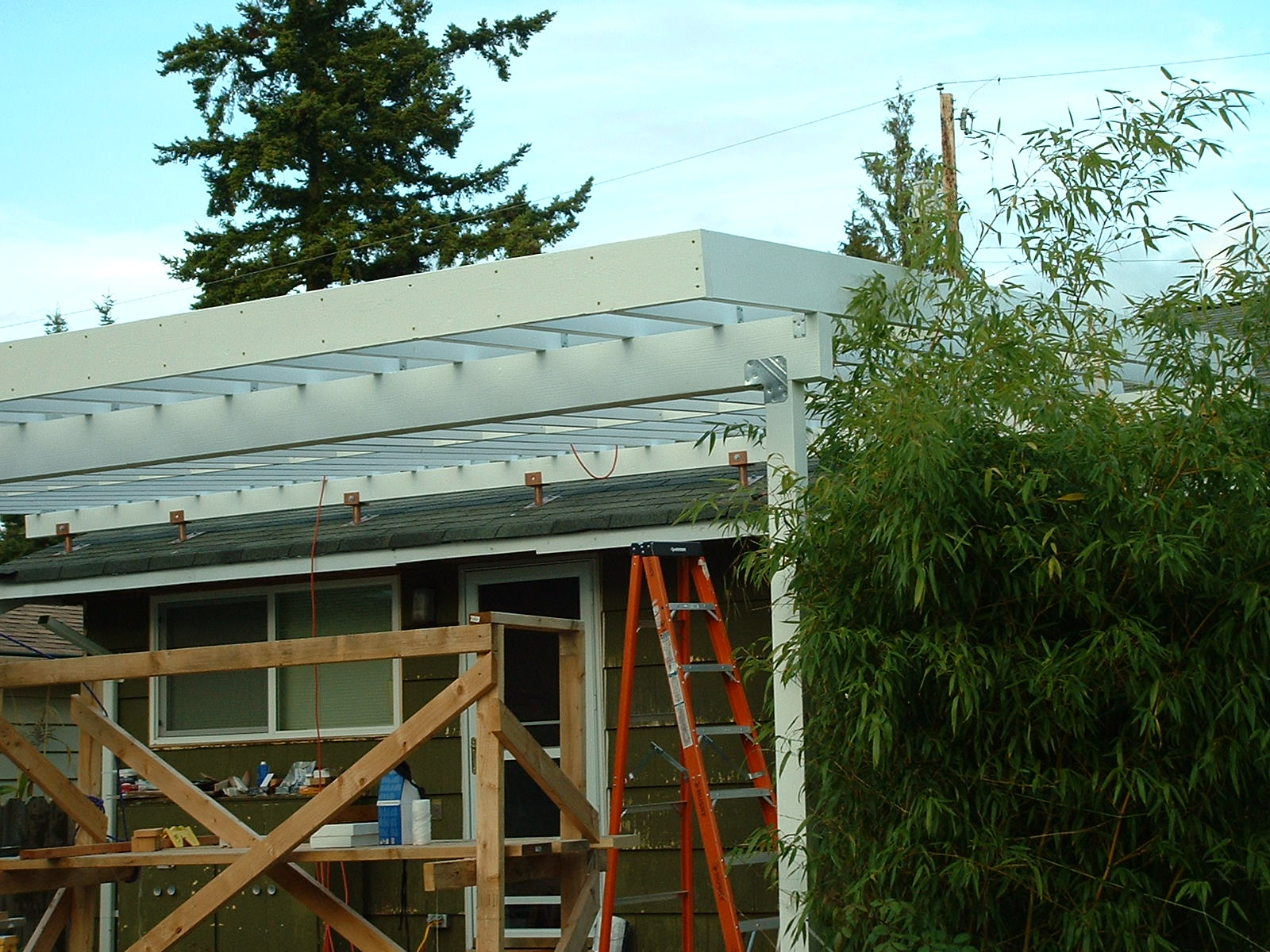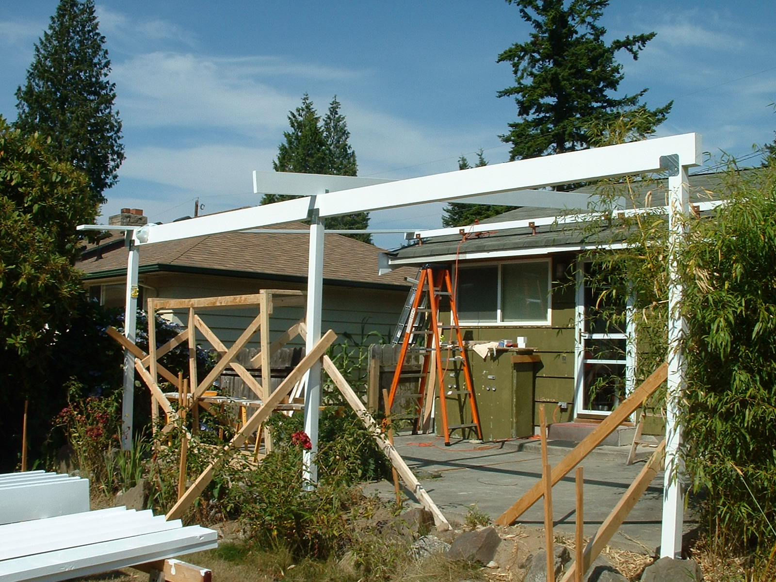 As I placed the front header beams I installed one rafter to stabilize the structure.