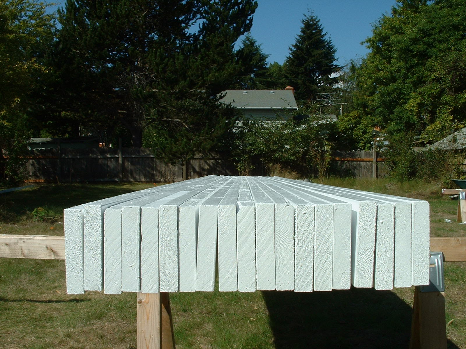 The wood was ordered and delivered in three loads. Each load’s dollar amount met the minimum requirement for the delivery to be free. This kept the yard stock quantities down while I primed and painted the boards.