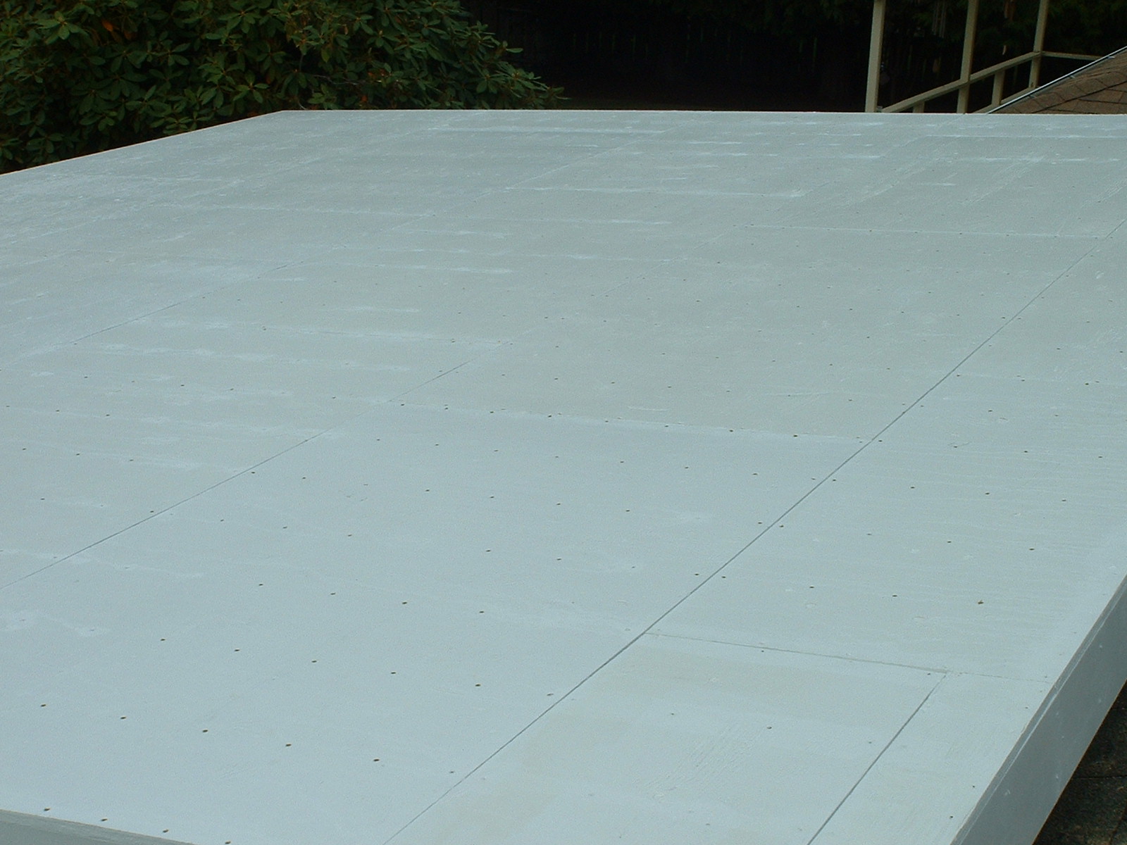 These pictures show the final surface application of PVC roofing material and the flashing. I hired a contractor to do this.