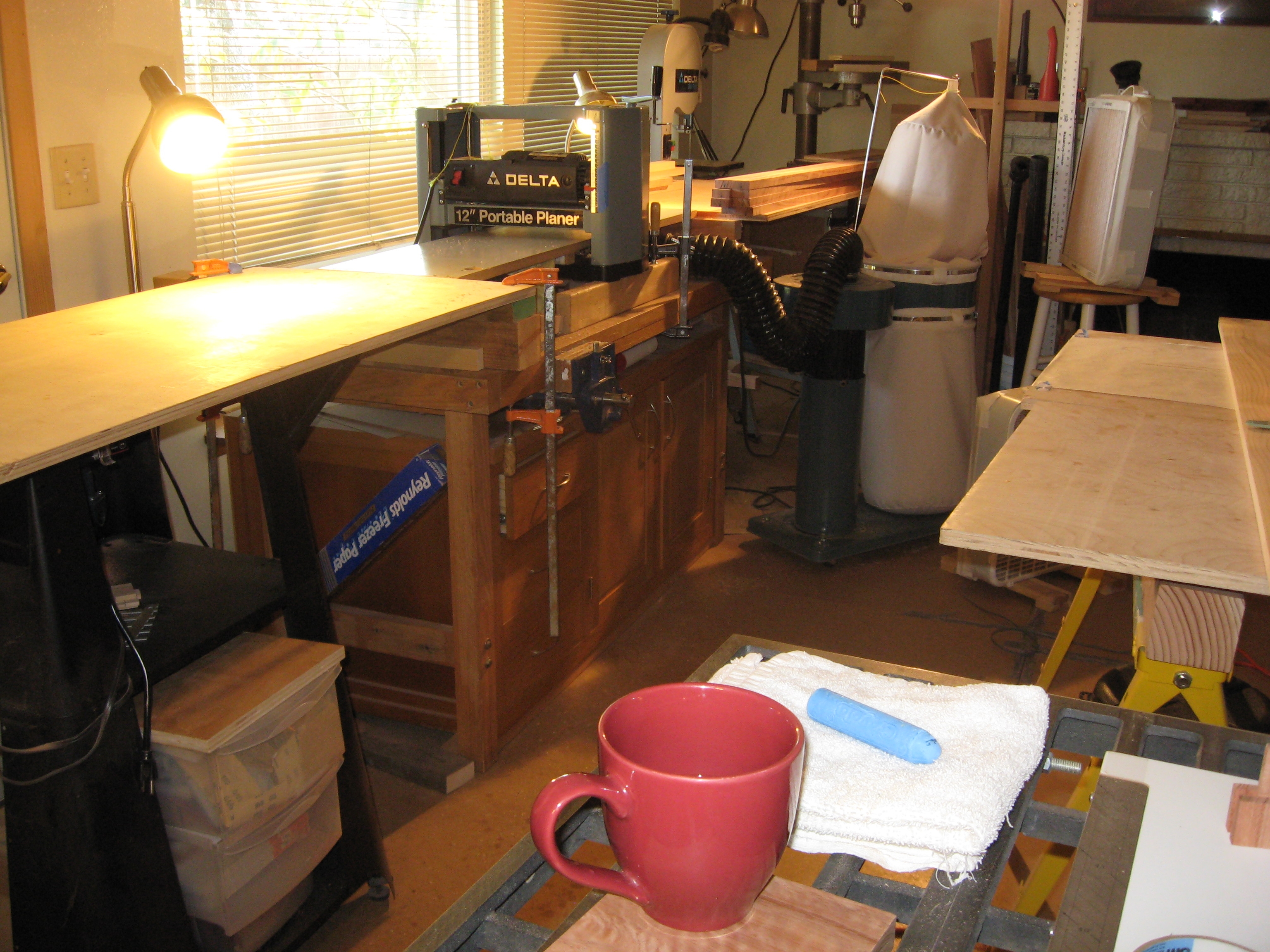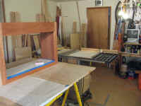 Edge planing the 2" face frame stiles. Four face frames assembled. Now more plywood and melamine must be cut.