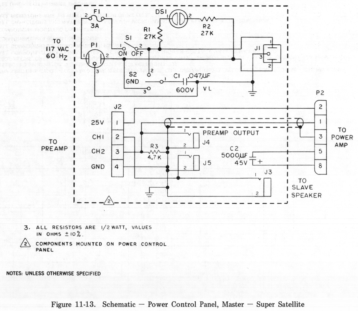 - 11-8: Schematic - Preamplifier - 80 Watt Suitcase and Super Satellite